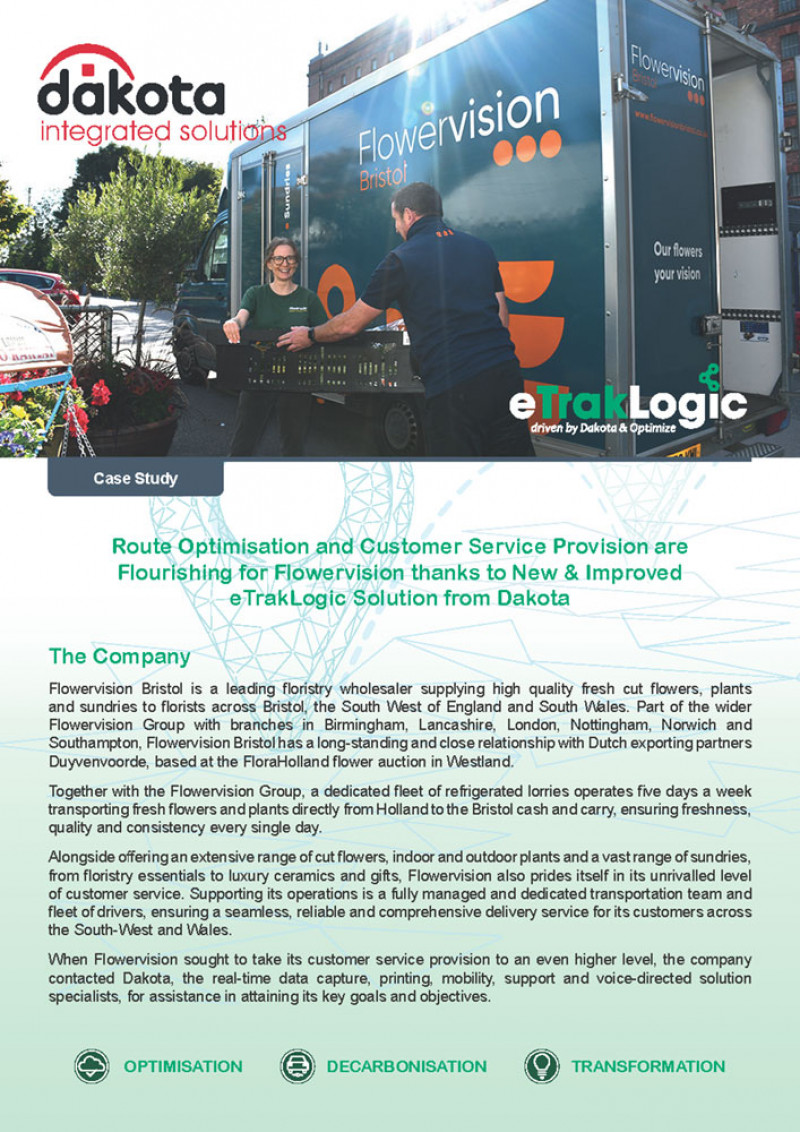 eTrakLogic® Case Study: Route Optimisation and Customer Service Provision are Flourishing for Flowervision thanks to New & Improved eTrakLogic Solution from Dakota