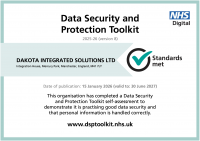 Real-time data capture, printing, mobility and voice-directed solutions specialist Dakota Integrated Solutions is delighted to announce that it has achieved the standards required to uphold its NHS Digital Data Security and Protection Toolkit Accreditation.
